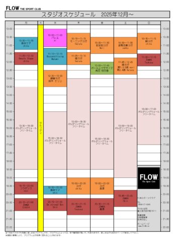 12月スタジオスケジュール
